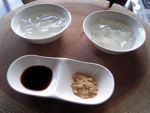 二人で葛きりと葛餅をひとつずつ頼んだら、半分ずつに分けて出してくれました。