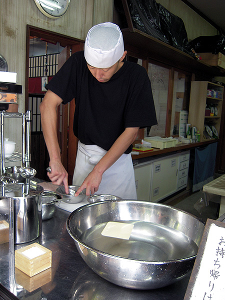 説明しながら手際よくつくってくれた職人さんと、できたての葛餅。ぷるぷる。