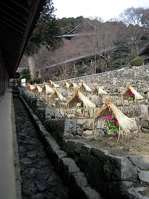 登廊の脇には冬牡丹が咲いていました。